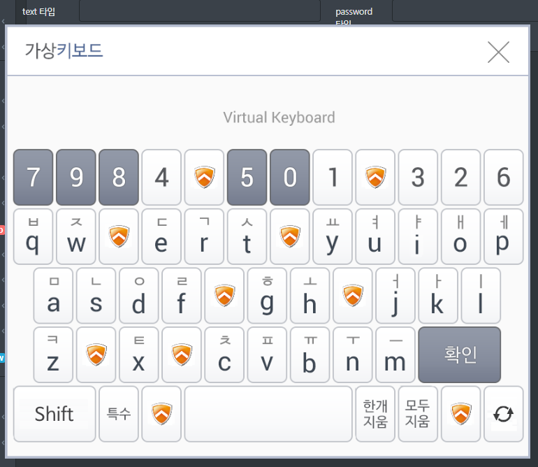 아래의 그림은 입력 양식의 속성을 읽어서 보안 입력기를 컴포넌트를 자동으로 등록하여 보안 입력이 가능하도록 처리한 예시입니다.