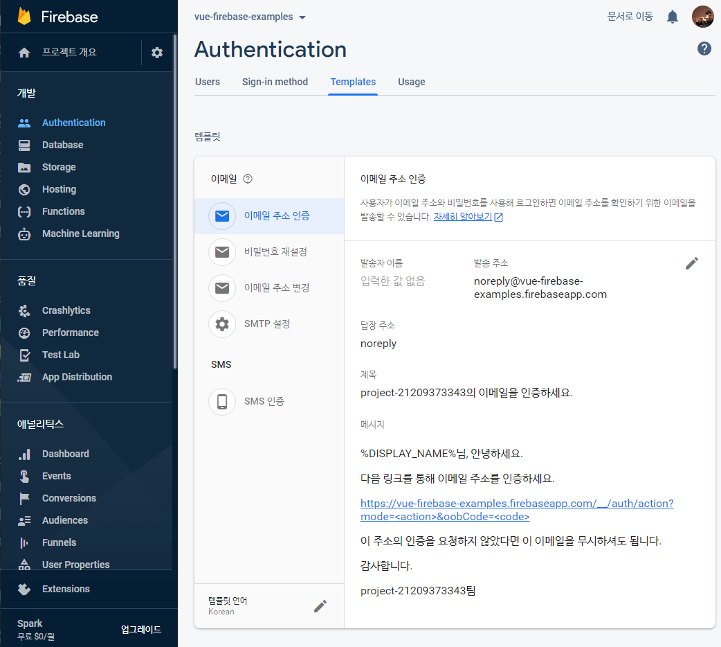 필요에 따라 이메일 인증의 메일 내용을 수정합니다.