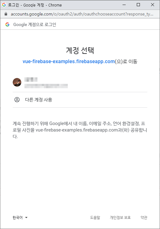 Google Login 버튼을 클릭하여 Google 로그인 창을 띄웁니다.
