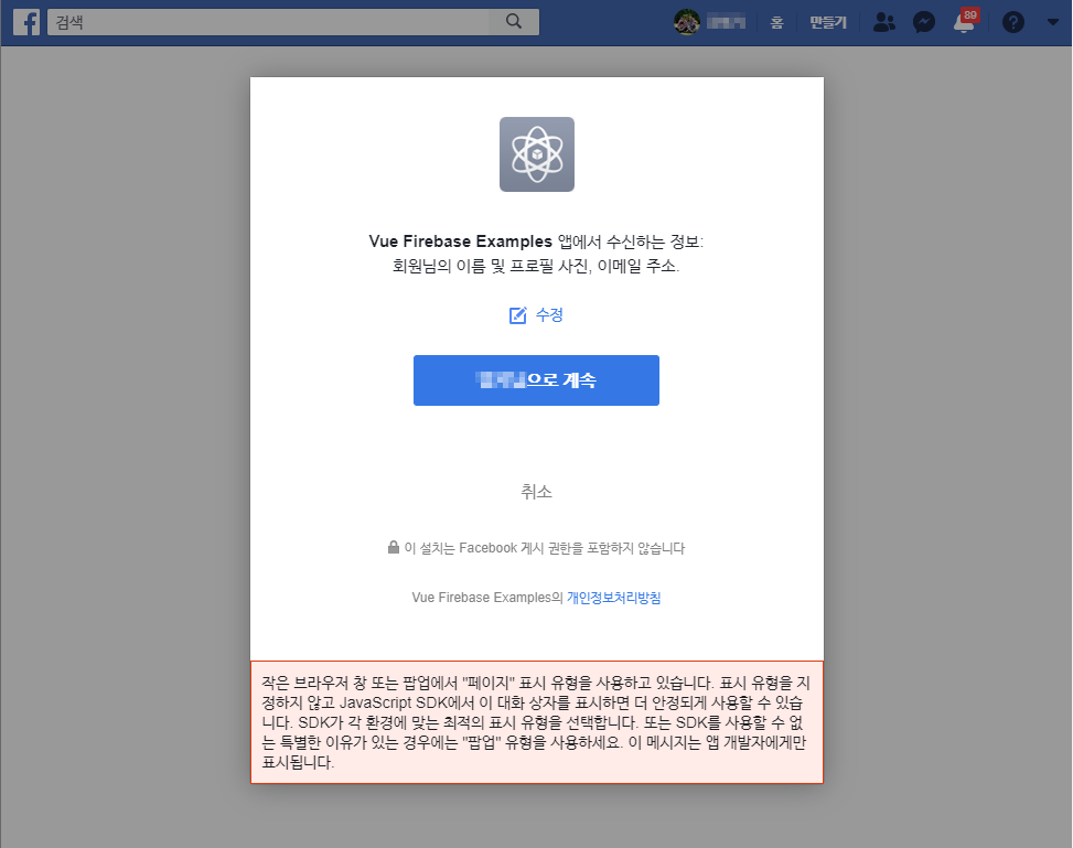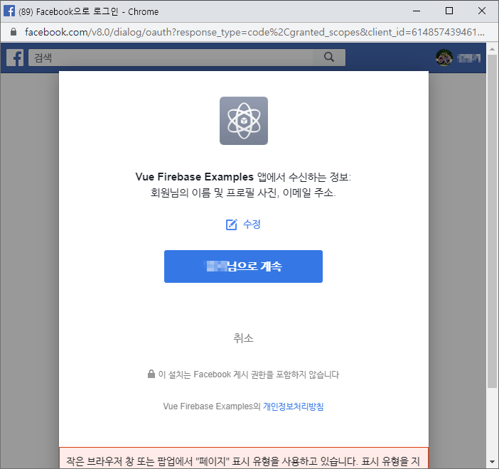 팝업창 방식 페이스북 로그인